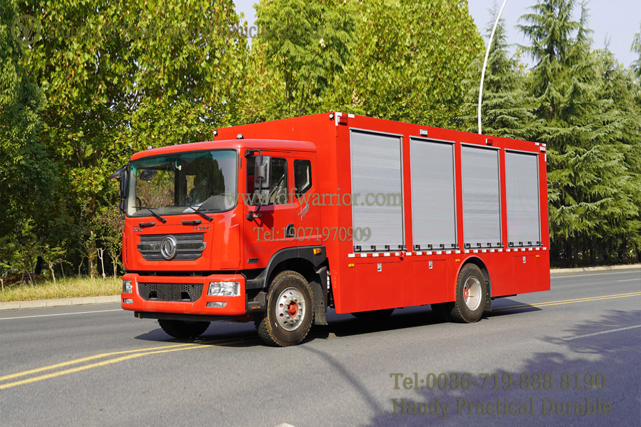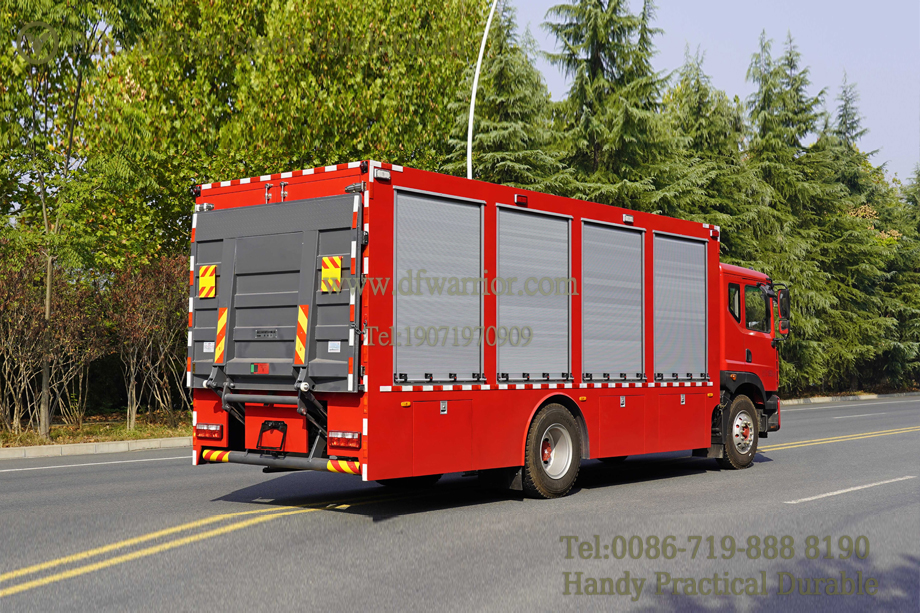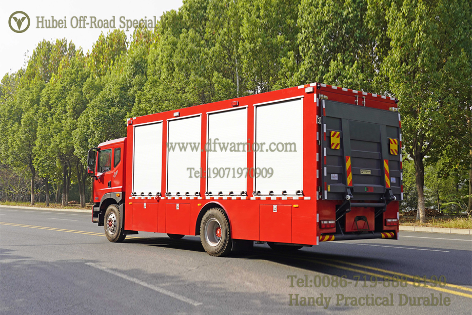 | คนอื่น | แต่ละด้านของห้องโดยสารทรงสี่เหลี่ยมมีประตูกลิ้ง 4 บาน และด้านหลังของรถเป็นโครงสร้างประตู 2 บานแบบตู้คอนเทนเนอร์พร้อมประตูท้ายแบบไฮดรอลิก ภายในช่องมีชั้นวางหลายชั้นสำหรับจัดเก็บอุปกรณ์กู้ภัยทุกชนิด นอกจากนี้ยังสามารถติดตั้งถังเพื่อใช้เป็นรถสปริงเกอร์และรถดับเพลิงโฟมได้อีกด้วย |