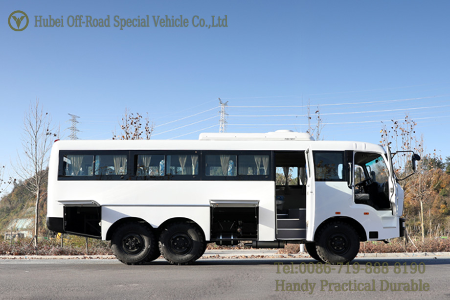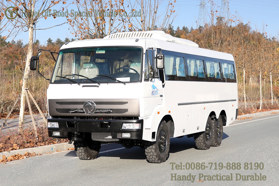 รถบัสออฟโรด 6WD ใช้แชสซีออฟโรดคลาสสิกของ Dongfeng ประสิทธิภาพออฟโรดที่เหนือกว่า สามารถเดินทางในสภาพถนนที่ไม่ดี เหมาะสำหรับการบรรเทาภัยพิบัติกู้ภัย การก่อสร้างถนน การขนส่งวัสดุ ฯลฯ